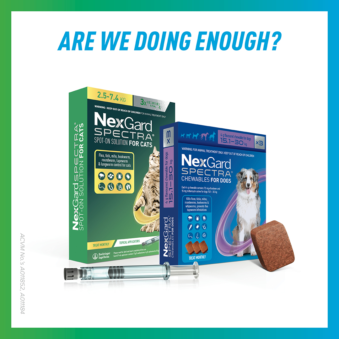 It’s extremely easy to treat Toxocara, with choices including tasty chews for dogs and spot-on products for cats. Given that the prepatent period of Toxocara spp. is just over a month,worming monthly is the best way to minimise egg shedding in animals.